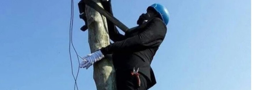 A photo of a dead man tied to a light pole is being circulated on social media and we can tell that man was an electrician when he was alive.
