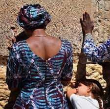 Mrs Osinbajo, the vice president wife of Nigeria in deep prayers at the Wailing Walls of Jerusalem Israel.