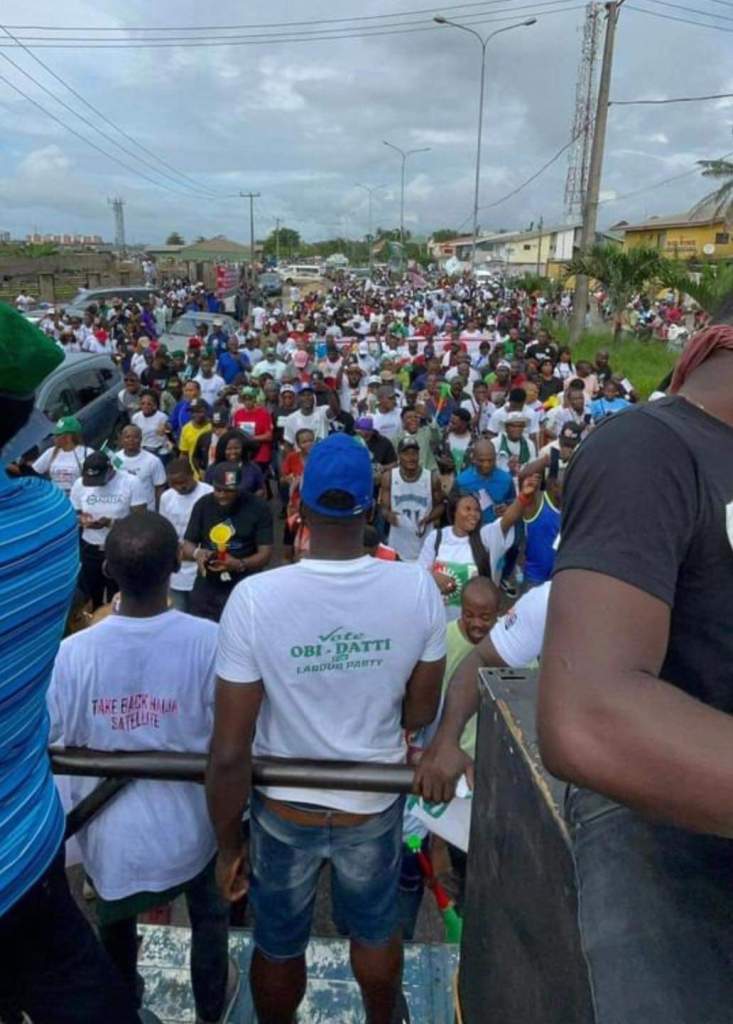 Despite the threatening from the Government that the Youths should not campaign for Obi. The youths of Festac Town came out in mass to support 🙌 👌 Obi.